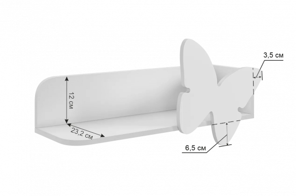 Изготовлена полка из качественных материалов: корпус из лдсп белого дерева придаст интерьеру легкость и свежесть, а декоративный элемент в виде бабочки из мдф розового цвета, эмаль внесет нотку игривости и нежности.