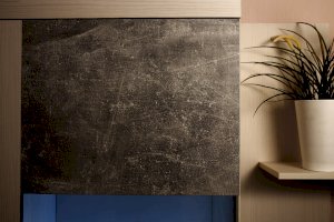 Брутальная эстетика. Законодатели интерьерных тенденций “сдали” бетону кухню, ванную, облицовку стен и пола, а теперь уже и мебель для других комнат. Особенно гармонично материалы “под бетон” выглядят в лофтах - популярных однокомнатных планировках недорогих квартир, ориентированных на молодую аудиторию. Спокойный и мужественный “бетонный” декор Ателье Светлый на фасадах стенки ЛЕОН облечен в раму из древесного декора Ясень Анкор светлый.