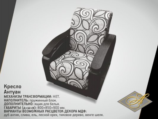 Кресло Антуан Асм - за 20 221 руб. в Видном. Купите на сайте vidnoe.onlinemarketmebeli.ru или по телефону 8(800)505-30-63 уже сегодня! Уточнить наличие, комплектацию, актуальную цену можно бесплатно у менеджера ежедневно. Закажите Кресло Антуан Асм до конца акции! Доступна покупка в кредит, рассрочку. Доставим со склада или на заказ.