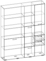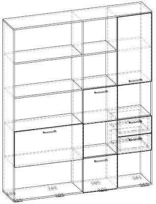 Применение задней стенки из ЛДСП (в ячейках с ящиками и фасадами) позволяет использовать данный стеллаж для зонирования пространства (чтобы предотвратить опрокидывание, необходимо обеспечить крепление стеллажа к стене).