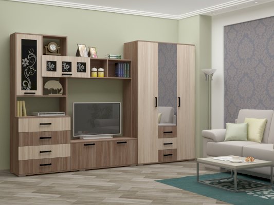ясень шимо светлый Эта модульная система отличается своей компактностью, легкостью, функциональностью. Стенка подойдет как в малогабаритную квартиру, так и в просторную гостиную.