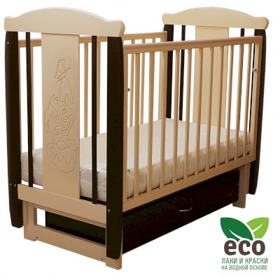 варианты цветовых решений Кроватка "Соня 04" имеет механизм качания поперечный маятник. Механизм качания фиксируется. Возможен вариант с ящиком.