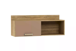 Полка органично дополнит рабочее место в детской. Закрытая секция модуля подойдет для хранения книг. Газлифты максимально высоко поднимают фасад вверх, обеспечивая большую площадь обзора содержимого. Предметы декора будут хорошо смотреться в открытой секции полки.