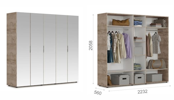 | Наполнение шкафа | выдвижные ящики / зеркало |
