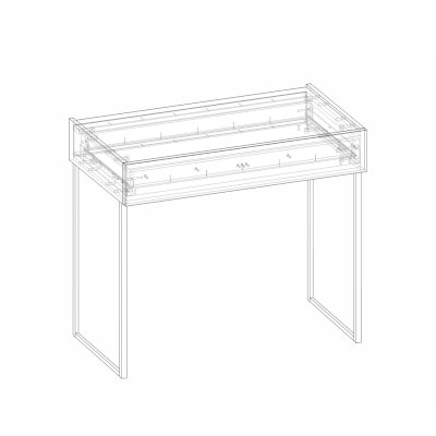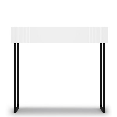 Модель имеет яркий и лаконичный дизайн. Столик изготовлен в виде консоли на высоких опорах в стиле лофт. Его конструкция включает широкий выдвижной ящик, который справится с задачей хранения всевозможных мелочей, косметики и аксессуаров.
