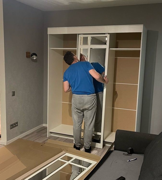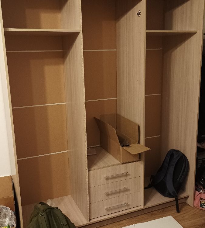 Шкаф был доставлен вовремя! Ребята сами занесли. Сборку делали сами