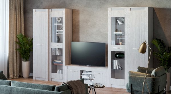 Гостиная «Монако» - это стильный современный дизайн, надёжная фурнитура, просторные шкафы для одежды и белья. За стеклеными створками можно разместить как дорогой фамильный сервиз, так и любой другой аксессуар, которым по праву гордится Ваша семья. До мелочей продуманная возможность установки телевизора делают гостиную ещё более удобной в эксплуатации В правильно составленной композиции, все элементы гарнитура дополняют друг друга, и раскрывают свою незаменимость.