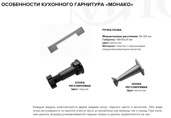 Все модули комплектуются стандартным набором фурнитуры. При желании можно дополнительно заказать другие ручки к фасадам.