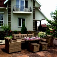 В составе комплекта: трехместный диван, стол с декингом, 2 кресла и 2 пуфа. Высококачественная лоза из полиротанга бежевого цвета стойкая к любым атмосферным явлениям. Крепкий стальной каркас с полимерным антивандальным покрытием и отличным качеством сварки. Изделие сплетено вручную нашими мастерами под жестким контролем качества на каждом этапе производства. Лоза максимально приближена по рельефу и текстуре к естественному материалу. Идеально подходит для использования на улице и внутри помещения в любую погоду. Не боится воды, солнца и минусовой температуры.