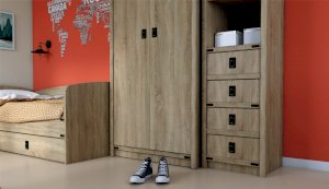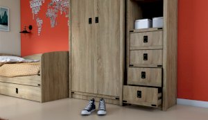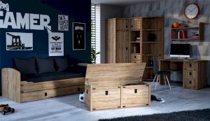 Детская Валенсия - отличное решение для детей любой возрастной категории. Все модули этой системы максимально функциональны и вместительны. Разнообразие модулей позволит Вам подобрать оптимальный комплект. Декоративные элементы создают яркий морской стиль этого комплекта. В этой модели предлагается более компактное решение двуспальной кровати, чем многоярусная кровать, съедающая слишком много пространства. При этом есть возможность превратить кровать в диван. Жемчужина модели – сундук. При относительно демократичной цене в комплекте использованы высококачественные материалы.