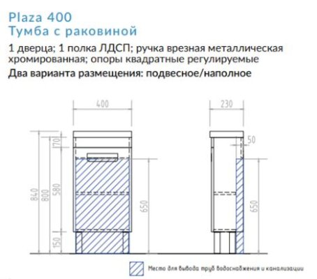 Размер: 400х840х230 мм (ДхВхГ)
