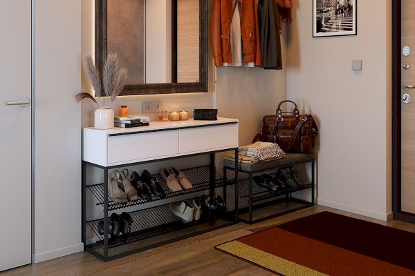 Стильная и модная консоль для обуви в стиле Лофт из алюминиевого профиля. Изделие не разборное, одноразовая сборка алюминиевой конструкции.