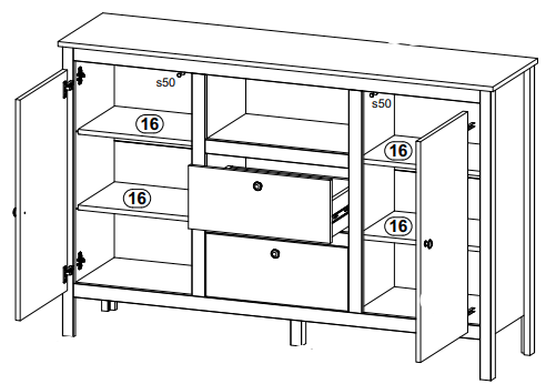 Задняя стенка: плита ХДФ (ДВП) односторонне лакированная