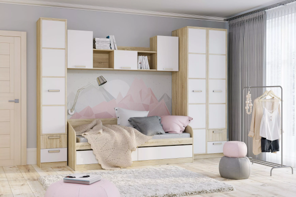Шкаф «Фанк» предназначен для тех, кто любит выдержанный стиль. Идеально для организации подростковой комнаты. А универсальный дизайн и цветовое решение подойдет как для мальчика, так и для девочки. Отделение с 2-мя штангами позволит удобно развесить большое количество одежды на вешалках. Наличие полок позволит рассортировать одежду и поставить коробки. Два выдвижных ящика предназначены для сложенной одежды, аксессуаров, личных вещей.