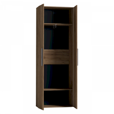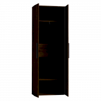 Распашной шкаф с глухими фасадами в декоре Дуб Табачный комплектуется выдвижной штангой для одежды. Глухие фасады с серой ручкой из массива. Регулируемые опоры шкафа помогут компенсировать неровности пола.
