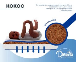 Идеально подходит для малой трансформации кроватки Dreams Smart. Трехслойный матрас позволяет регулировать жесткость спального места для вашего малыша, а натуральные материалы (кокос, латекс) создадут оптимальный ортопедический эффект от эксплуатации.