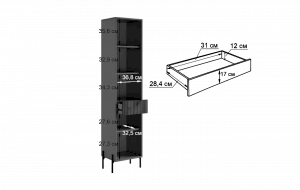 Особенностью стеллажа "Доминика" является выкатной ящик, который обеспечивает дополнительное пространство для хранения. Фасад ящика украшен декоративным элементом в цвете "дуб крафт золотой", придающим стеллажу элегантный и роскошный вид.