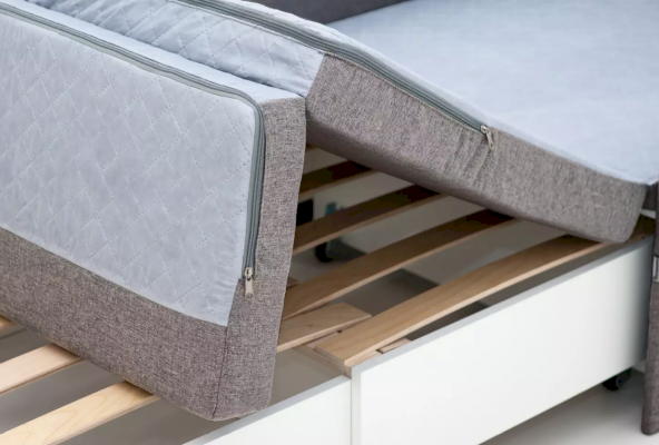 Благодаря выкатному механизму и вшитым ручкам кресло раздвигается одним движением. Нужно минимум усилий, чтобы собрать кресло и убрать постель, справится даже ребенок. Прорезиненные колесики не повредят пол.