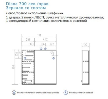 Зеркало Diana 700 со спотом (Виго)