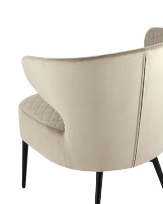 Современное комфортное кресло для отдыха и релакса. Обивка выполнена из велюра - износостойкий и простой в уходе материал. Внутренняя сторона обивки украшена ромбовидной строчкой. Мягкое сиденье шириной 61 см и спинка с оригинальными подлокотниками обеспечивают удобство при длительном отдыхе. Металлические ножки оснащены подпятниками, которые защищают напольные покрытия от царапин и препятствуют скольжению.