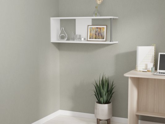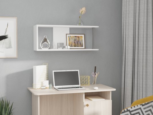 Полка прекрасно подходит для полноценной обстановки рабочего места, гостиной, детской. Такую модель можно использовать для рабочих материалов и предметов декора, расширяя полезное пространство.