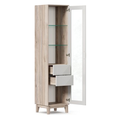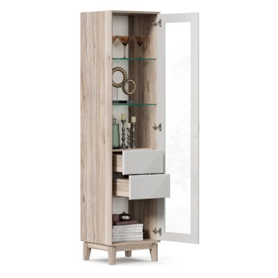 • За сборной распашной дверью со стеклом две стационарные горизонтальные перегородки и две съемные стеклополки 6 мм