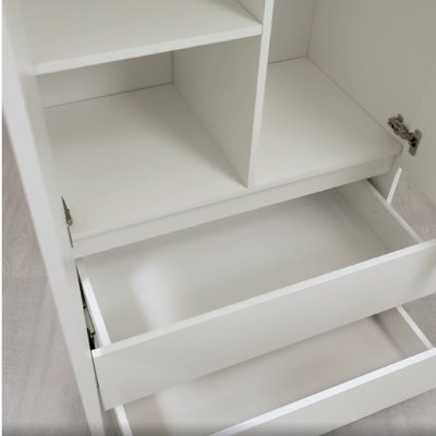 Простой и стильный дизайн, отсутствие лицевой фурнитуры, распашные створки на отталкивателях покорит ценителей минимализма.