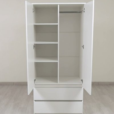 Шкаф двухстворчатый «Симпл» (ШК-03) — минималистичный двухстворчатый шкаф станет хорошим дополнением как к классическому, так и к современному интерьеру. В двух выдвижных ящиках удобно хранить обувь или белье. За распашными дверцами размещена штанга для хранения верхней одежды.