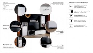 Мини-стенка «Лино» — это готовое бюджетное и функциональное решение, имеющее в составе всё необходимое для установки и использования в современной гостиной: открытые полки и закрытые шкафчики, большая ниша для телевизора. Дизайн в стиле эко-минимализм, строгая геометрия линий гармонизирует пространство, а нейтральное сочетание белого цвета с модной имитацией бетонного покрытия наполняет комнату простором и свободой, добавляет света и свежести.
