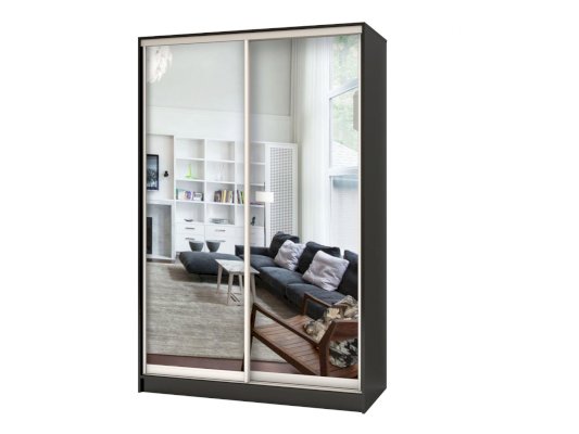 корпус - Венге Цаво, фасады - зеркало, рамка двери и треки - Серебро матовое.