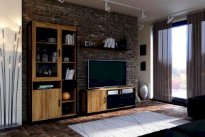 Тумба комбинированная Дуб золотой/Черный Техно 678210
