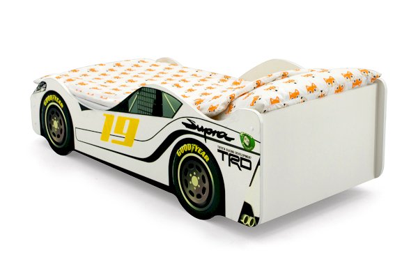 Кровать-машина “Супра” для мальчиков и девочек от 2 до 10-12 лет. Основа конструкции – безопасное ЛДСП, которое соответствует всем стандартам качества в области экологии и охраны здоровья. Ортопедическое основание кровати выдерживает вес до 200 кг.