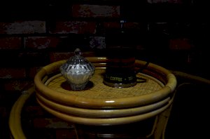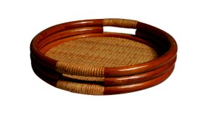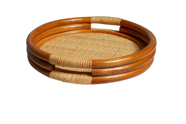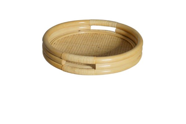 Круглый поднос из ротанга.