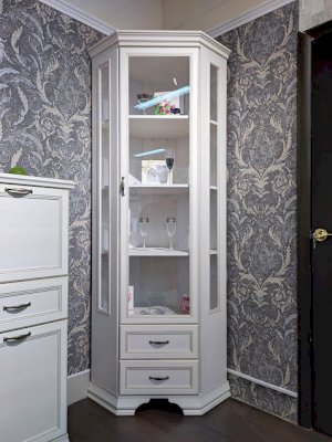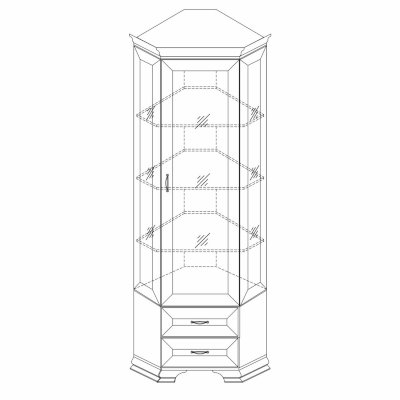 Угловая витрина «Сиена» - это находка для любителей классического стиля в интерьере, а его наполнение в виде полок и выдвижных ящиков позволит вам размесить различные предметы обихода, посуду или рамочки с фото. Габариты и конструкция шкафа позволяют его установить в угловом пространстве комнаты, что зачастую позволяет сэкономить пространство и получить вместительный модуль.