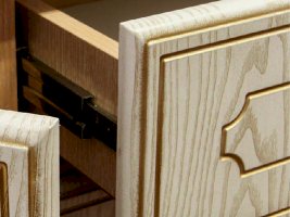 Классический дизайн и плавные линии буфета Анжелика создают атмосферу красоты и гармонии. Две витрины со стеклянными полками, 4 шкафчика хранения посуды и ящик для столового серебра. Направляющие ящика полного выдвижения. Ручка бронзовая с керамической отделкой. Стекло матированное с рисунком.