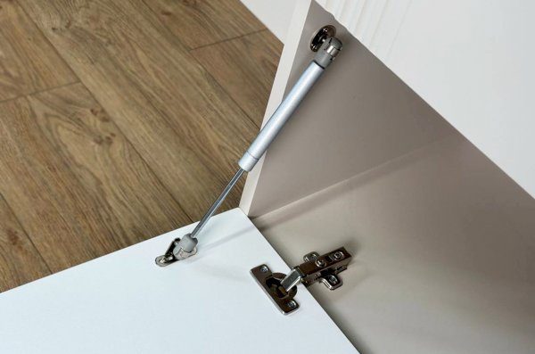 Металлические ручки и выкатные ящики на шариковых направляющих обеспечивают удобный доступ к вещам. Регулируемые металлические опоры гарантируют стабильность конструкции.