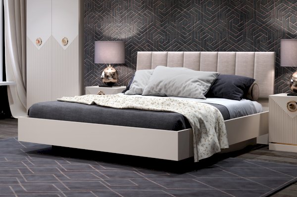 Ткань изголовья - микровелюр catania в цвете айвори гармонично сочетается с корпусом из ЛДСП в цвете сатин. Высокие показатели износостойкости микровелюра служат гарантией долгой службы мебели и сохранения первоначального вида. Технология wet proof, применяемая для обработки ткани, защищает спинку от влаги и загрязнений.