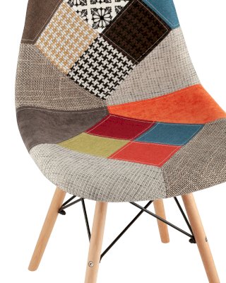 Стул из серии DSW в обивке из ткани, выполненной в технике пэчворк. Эргономичная спинка обеспечивает оптимальный комфорт. Благодаря минимализму, изящности и легкости конструкции, стулья в стиле Eames гармонично вписываются в интерьер самых разных стилей и не выходят из моды уже многие десятилетия.