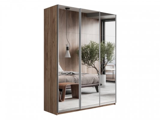 Шкаф-купе 3-х дверный Прайм Зеркало/Зеркало/Зеркало 1800х2300х570 мм Крафт табачный