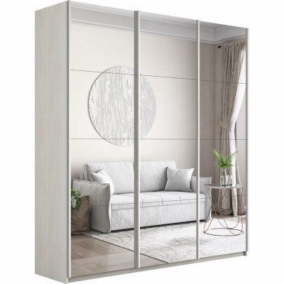 Шкаф-купе 3-х дверный Прайм Зеркало/Зеркало/Зеркало 1800 мм Белый снег