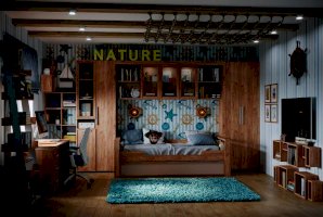 Высокий шкаф для хранения идеально подходит для комнаты подростков, в которой слишком много разнообразных и таких "нужных вещей". Верхний рамочный фасад с тонированным стеклом открывается за раму, нижний фасад Контур открывается за серую ручку из массива. Верхний и нижний фасады можно перенавесить на левую и на правую стороны.