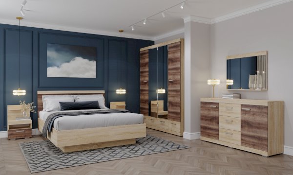 Модульная спальня Соната Дуб Сонома/Дуб Сакраменто (Памир)