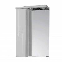 Зеркало в комплекте оснащено шкафчиком с мягкой подсветкой и влагостойким покрытием всей поверхности стекла для защиты от запотевания. Для хранения вещей предусмотрены вместительные полки в тумбе, которые можно варьировать по высоте.