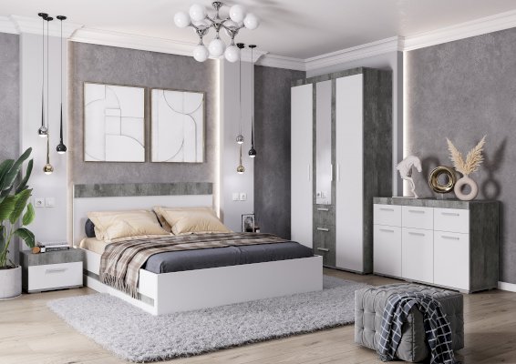 Отличный выбор для современной спальни – это кровать Инстайл. Использование белого цвета в каркасе придает модели легкости и позволяет расположиться в любом интерьере. Часть изголовья выполнена в цвете бетон. Данный цвет является отличительной чертой модульной коллекции мебели Инстайл.