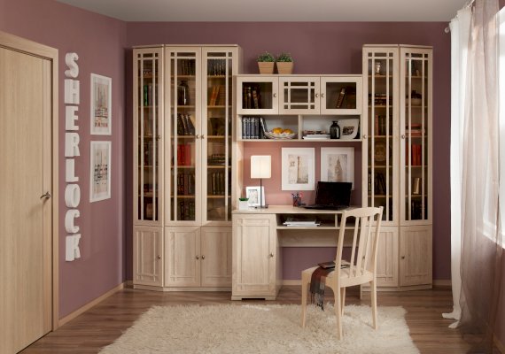 В наше время всё больше людей работают дома: деловые люди, которые продолжают работу после офиса по вечерам, творческие личности, для которых необходима спокойная домашняя обстановка на рабочем месте. Организовать своё рабочее место в современной квартире поможет новинка от Глазовской мебельной фабрики — библиотека SHERLOCK.